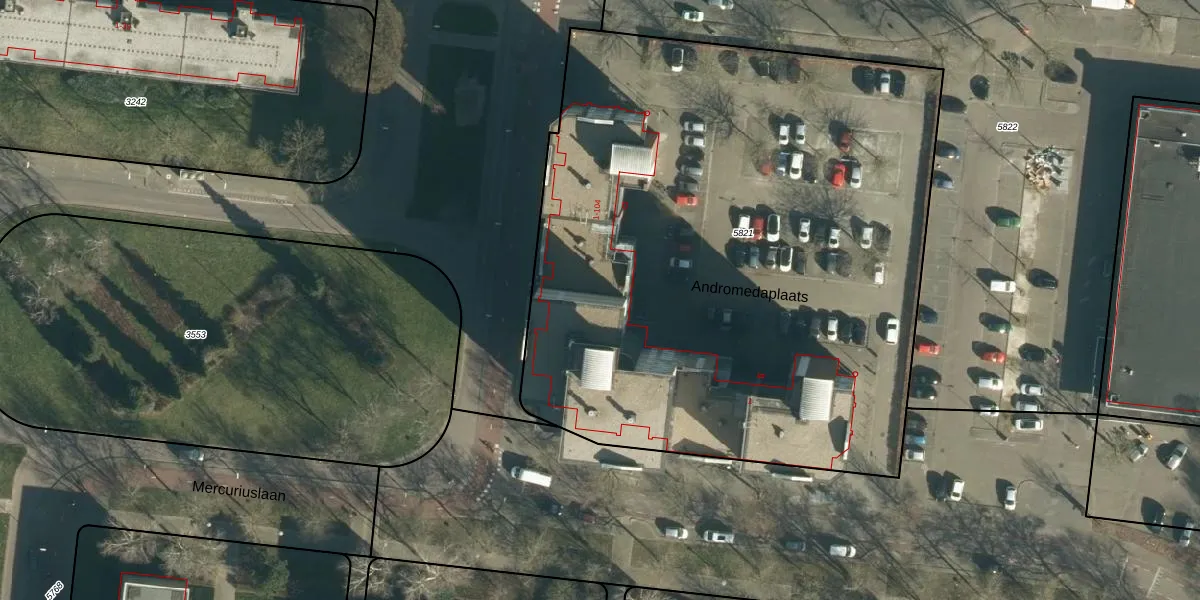 Het perceel waarop Andromedaplaats 73 staat heeft een oppervlakte van 4335 m². Dit is een zeer groot perceel. De perceeloppervlakte wordt geregistreerd door het Kadaster. Gedetailleerde informatie over de maten van dit perceel kunt u vinden in het rapport Kadastrale kaart met maatvoering van Andromedaplaats 73.
