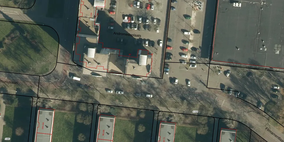 Het perceel waarop Andromedaplaats 84 staat heeft een oppervlakte van 4335 m². Dit is een zeer groot perceel. De perceeloppervlakte wordt geregistreerd door het Kadaster. Gedetailleerde informatie over de maten van dit perceel kunt u vinden in het rapport Kadastrale kaart met maatvoering van Andromedaplaats 84.