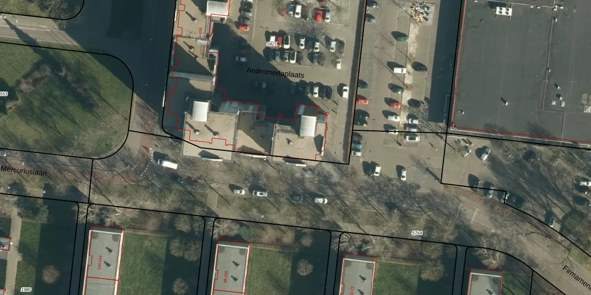 Het perceel waarop Andromedaplaats 88 staat heeft een oppervlakte van 4335 m². Dit is een zeer groot perceel. De perceeloppervlakte wordt geregistreerd door het Kadaster. Gedetailleerde informatie over de maten van dit perceel kunt u vinden in het rapport Kadastrale kaart met maatvoering van Andromedaplaats 88.
