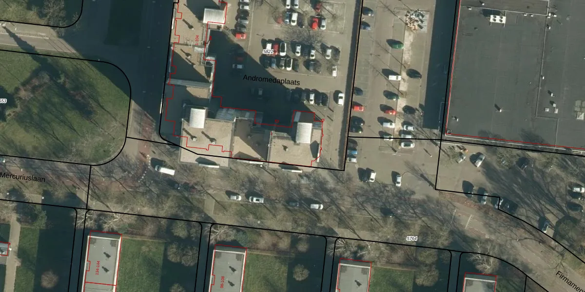 Het perceel waarop Andromedaplaats 89 staat heeft een oppervlakte van 4335 m². Dit is een zeer groot perceel. De perceeloppervlakte wordt geregistreerd door het Kadaster. Gedetailleerde informatie over de maten van dit perceel kunt u vinden in het rapport Kadastrale kaart met maatvoering van Andromedaplaats 89.