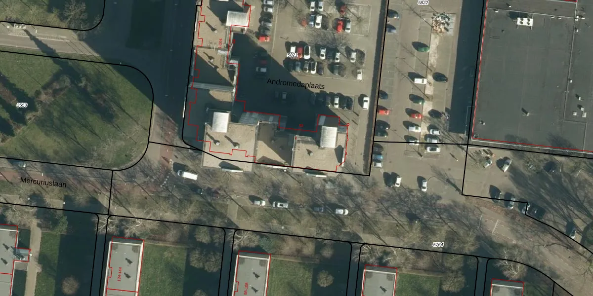Het perceel waarop Andromedaplaats 97 staat heeft een oppervlakte van 4335 m². Dit is een zeer groot perceel. De perceeloppervlakte wordt geregistreerd door het Kadaster. Gedetailleerde informatie over de maten van dit perceel kunt u vinden in het rapport Kadastrale kaart met maatvoering van Andromedaplaats 97.