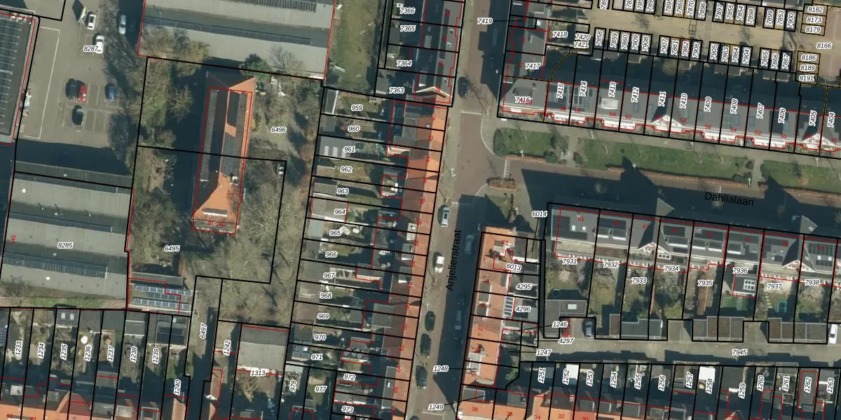 Gebruik de zoekbalk of klik op een perceel voor informatie over de adressen binnen dit perceel.