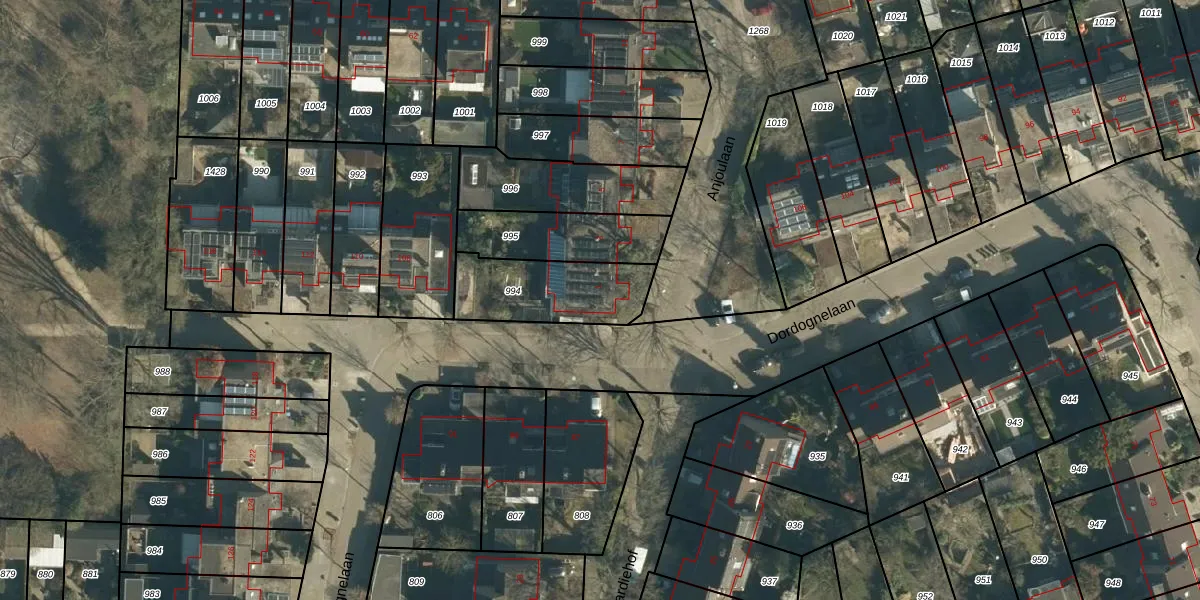 Anjoulaan 1 is gelegen op kadastraal perceel WSL01R994. Deze kadastrale aanduiding is uniek en wordt gebruikt door het Kadaster om eigendomsrechten en andere zakelijke rechten vast te leggen. Het perceel maakt onderdeel uit van de kadastrale gemeente Woensel.