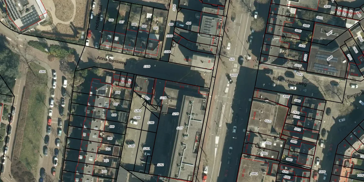 Het perceel waarop Anna Bijnsweg 5 staat heeft een oppervlakte van 1362 m². Dit is een zeer groot perceel. De perceeloppervlakte wordt geregistreerd door het Kadaster. Gedetailleerde informatie over de maten van dit perceel kunt u vinden in het rapport Kadastrale kaart met maatvoering van Anna Bijnsweg 5.