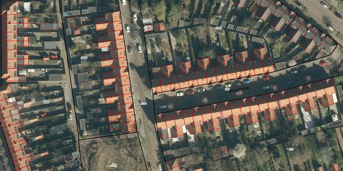 Annastraat 22 is gelegen op kadastraal perceel STR03C3240. Deze kadastrale aanduiding is uniek en wordt gebruikt door het Kadaster om eigendomsrechten en andere zakelijke rechten vast te leggen. Het perceel maakt onderdeel uit van de kadastrale gemeente Strijp.