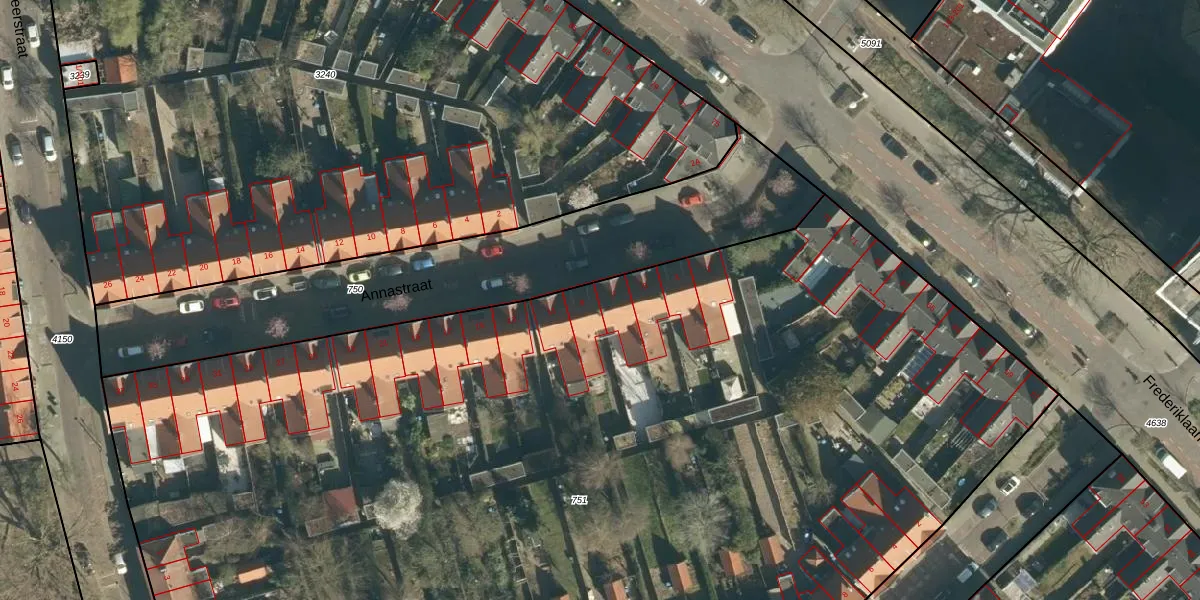 Annastraat 7 is gelegen op kadastraal perceel STR03C751. Deze kadastrale aanduiding is uniek en wordt gebruikt door het Kadaster om eigendomsrechten en andere zakelijke rechten vast te leggen. Het perceel maakt onderdeel uit van de kadastrale gemeente Strijp.