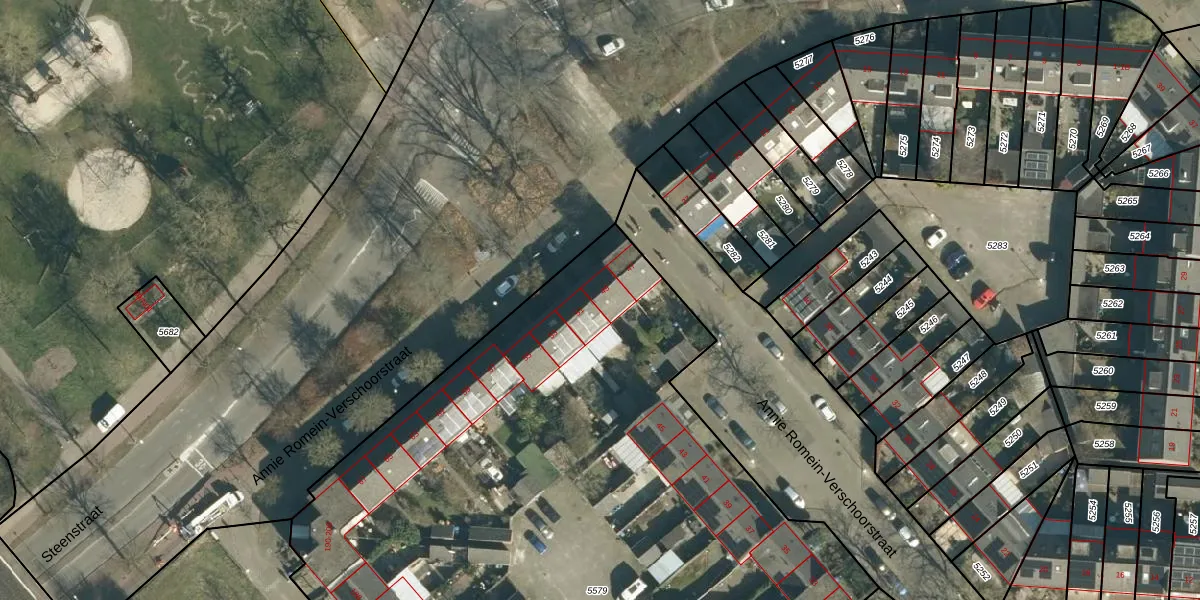 Het perceel waarop Annie Romein-Verschoorstraat 49 staat heeft een oppervlakte van 6183 m². Dit is een zeer groot perceel. De perceeloppervlakte wordt geregistreerd door het Kadaster. Gedetailleerde informatie over de maten van dit perceel kunt u vinden in het rapport Kadastrale kaart met maatvoering van Annie Romein-Verschoorstraat 49.