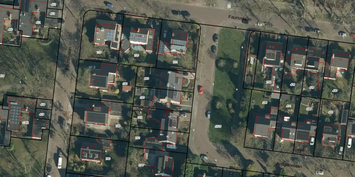 Gebruik de zoekbalk of klik op een perceel voor informatie over de adressen binnen dit perceel.