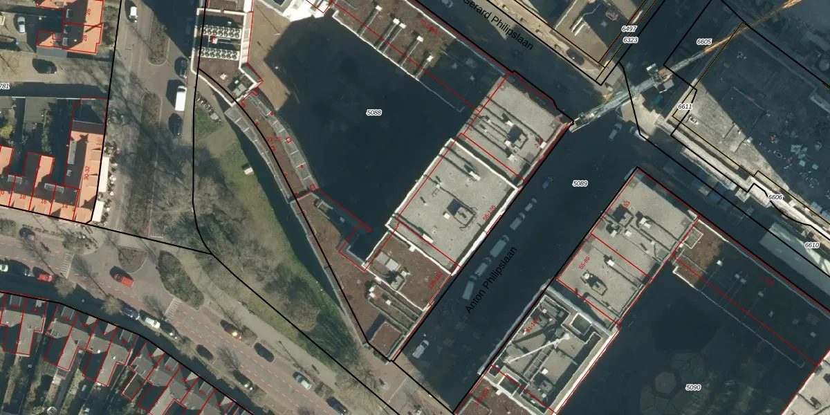Anton Philipslaan 116 is gelegen op kadastraal perceel STR03C5088. Deze kadastrale aanduiding is uniek en wordt gebruikt door het Kadaster om eigendomsrechten en andere zakelijke rechten vast te leggen. Het perceel maakt onderdeel uit van de kadastrale gemeente Strijp.