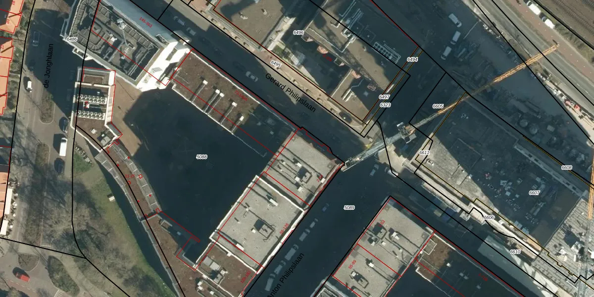 Anton Philipslaan 16 is gelegen op kadastraal perceel STR03C5088. Deze kadastrale aanduiding is uniek en wordt gebruikt door het Kadaster om eigendomsrechten en andere zakelijke rechten vast te leggen. Het perceel maakt onderdeel uit van de kadastrale gemeente Strijp.