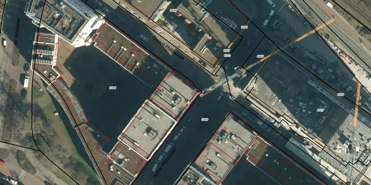 Het perceel waarop het adres ligt is STR03-C-5088. De afkorting 'STR03' staat voor kadastrale gemeente Strijp. Het perceel is met 5137 m² relatief groot. Het gemiddelde ligt in de kadastrale gemeente Strijp op 1879,07 m². Het grootste perceel in de kadastrale gemeente is 1,87 km². Het kleinste perceel heeft een oppervlakte van 0 m². Op het perceel zijn 251 adressen aanwezig. In de Basisregistratie Kadaster (BRK) werden de grenzen van het perceel geregistreerd op 10-01-2011.