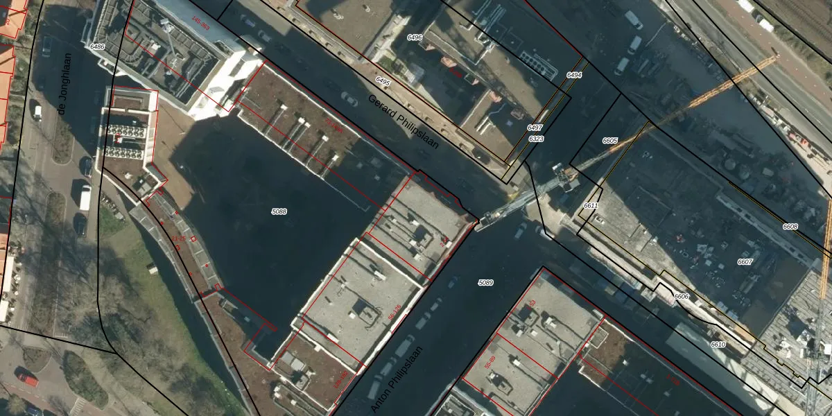 Het perceel waarop het adres ligt is STR03-C-5088. De afkorting 'STR03' staat voor kadastrale gemeente Strijp. Het perceel is met 5137 m² relatief groot. Het gemiddelde ligt in de kadastrale gemeente Strijp op 1879,07 m². Het grootste perceel in de kadastrale gemeente is 1,87 km². Het kleinste perceel heeft een oppervlakte van 0 m². Op het perceel liggen in totaal 251 adressen. De huidige grenzen van het perceel zijn digitaal in de Basisregistratie Kadaster (BRK) geregistreerd op 10-01-2011.