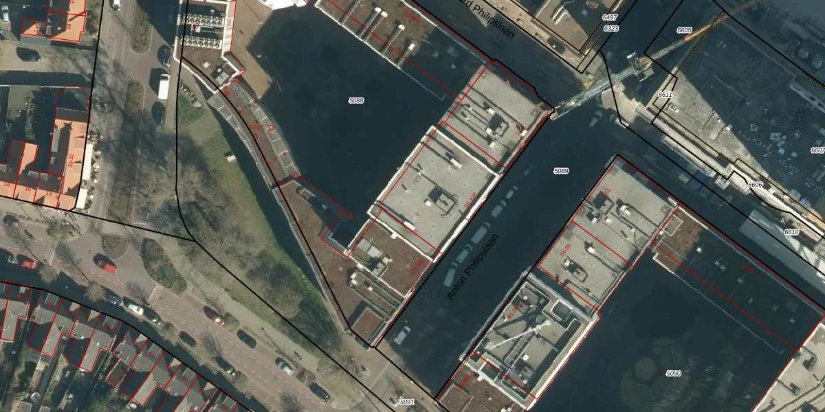 Anton Philipslaan 76 is gelegen op kadastraal perceel STR03C5088. Deze kadastrale aanduiding is uniek en wordt gebruikt door het Kadaster om eigendomsrechten en andere zakelijke rechten vast te leggen. Het perceel maakt onderdeel uit van de kadastrale gemeente Strijp.