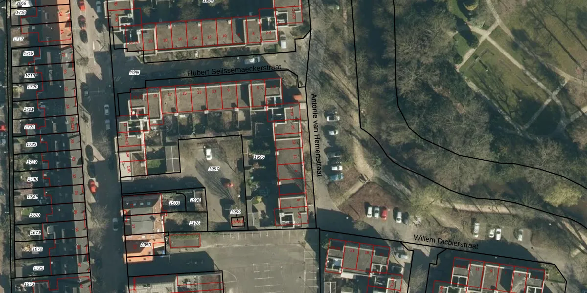 Het perceel waarop Antonie van Hemertstraat 13 staat heeft een oppervlakte van 2300 m². Dit is een zeer groot perceel. De perceeloppervlakte wordt geregistreerd door het Kadaster. Gedetailleerde informatie over de maten van dit perceel kunt u vinden in het rapport Kadastrale kaart met maatvoering van Antonie van Hemertstraat 13.