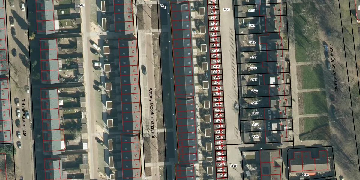 Het perceel waarop Antony Moddermanstraat 69 staat heeft een oppervlakte van 5829 m². Dit is een zeer groot perceel. De perceeloppervlakte wordt geregistreerd door het Kadaster. Gedetailleerde informatie over de maten van dit perceel kunt u vinden in het rapport Kadastrale kaart met maatvoering van Antony Moddermanstraat 69.