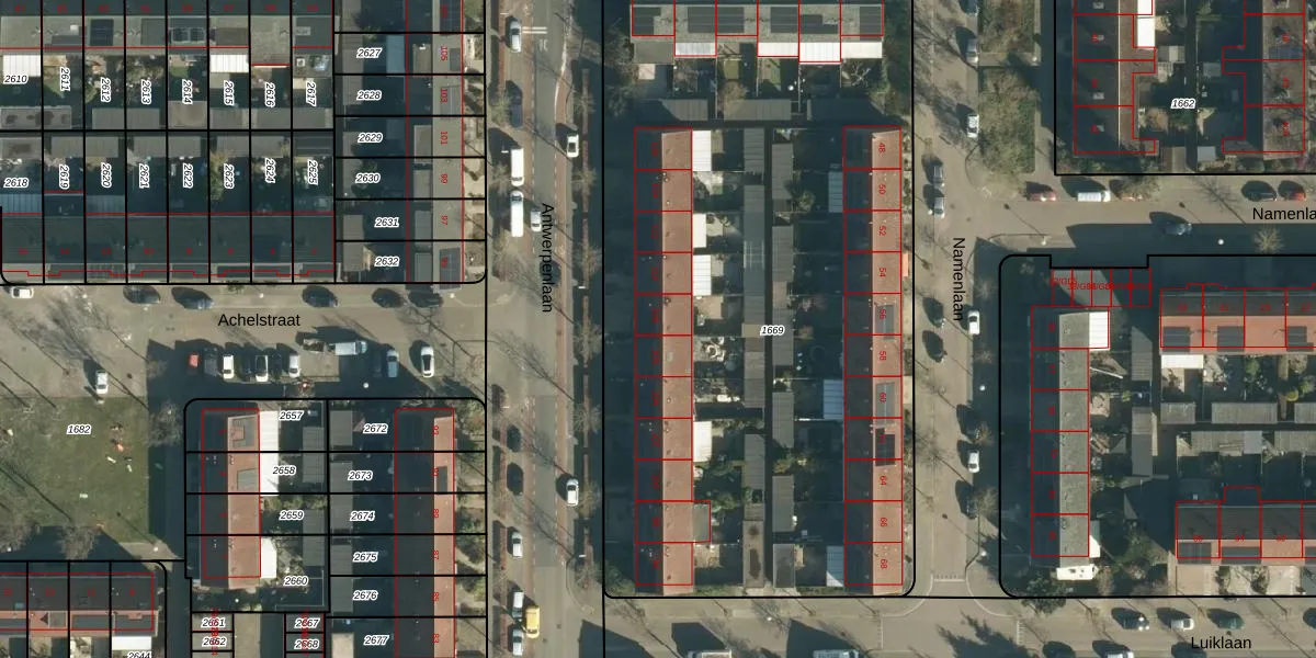 Antwerpenlaan 108 is gelegen op kadastraal perceel WSL01M1669. Deze kadastrale aanduiding is uniek en wordt gebruikt door het Kadaster om eigendomsrechten en andere zakelijke rechten vast te leggen. Het perceel maakt onderdeel uit van de kadastrale gemeente Woensel.