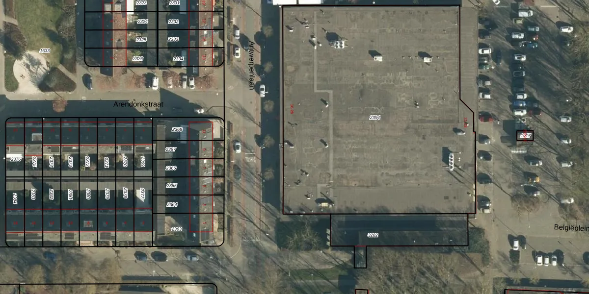 Het perceel waarop Antwerpenlaan 18 staat heeft een oppervlakte van 4452 m². Dit is een zeer groot perceel. De perceeloppervlakte wordt geregistreerd door het Kadaster. Gedetailleerde informatie over de maten van dit perceel kunt u vinden in het rapport Kadastrale kaart met maatvoering van Antwerpenlaan 18.