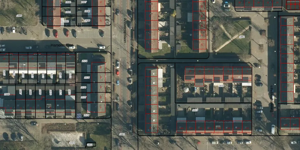 Antwerpenlaan 72 is gelegen op kadastraal perceel WSL01M1613. Deze kadastrale aanduiding is uniek en wordt gebruikt door het Kadaster om eigendomsrechten en andere zakelijke rechten vast te leggen. Het perceel maakt onderdeel uit van de kadastrale gemeente Woensel.