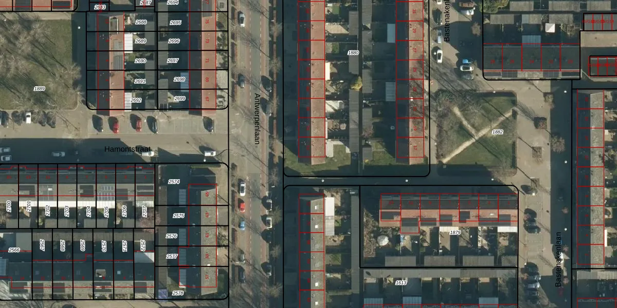 Antwerpenlaan 74 is gelegen op kadastraal perceel WSL01M1880. Deze kadastrale aanduiding is uniek en wordt gebruikt door het Kadaster om eigendomsrechten en andere zakelijke rechten vast te leggen. Het perceel maakt onderdeel uit van de kadastrale gemeente Woensel.