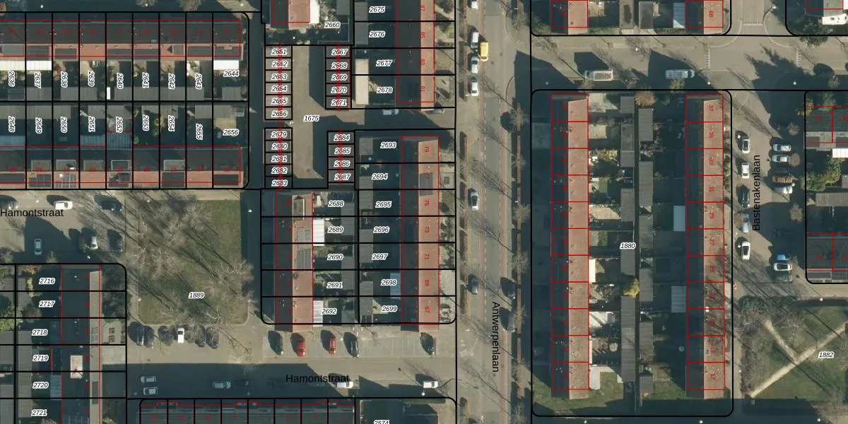 Antwerpenlaan 75 is gelegen op kadastraal perceel WSL01M2695. Deze kadastrale aanduiding is uniek en wordt gebruikt door het Kadaster om eigendomsrechten en andere zakelijke rechten vast te leggen. Het perceel maakt onderdeel uit van de kadastrale gemeente Woensel.