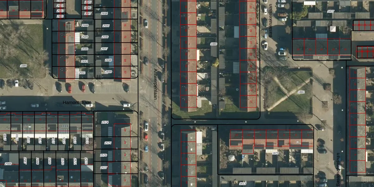Antwerpenlaan 76 is gelegen op kadastraal perceel WSL01M1880. Deze kadastrale aanduiding is uniek en wordt gebruikt door het Kadaster om eigendomsrechten en andere zakelijke rechten vast te leggen. Het perceel maakt onderdeel uit van de kadastrale gemeente Woensel.