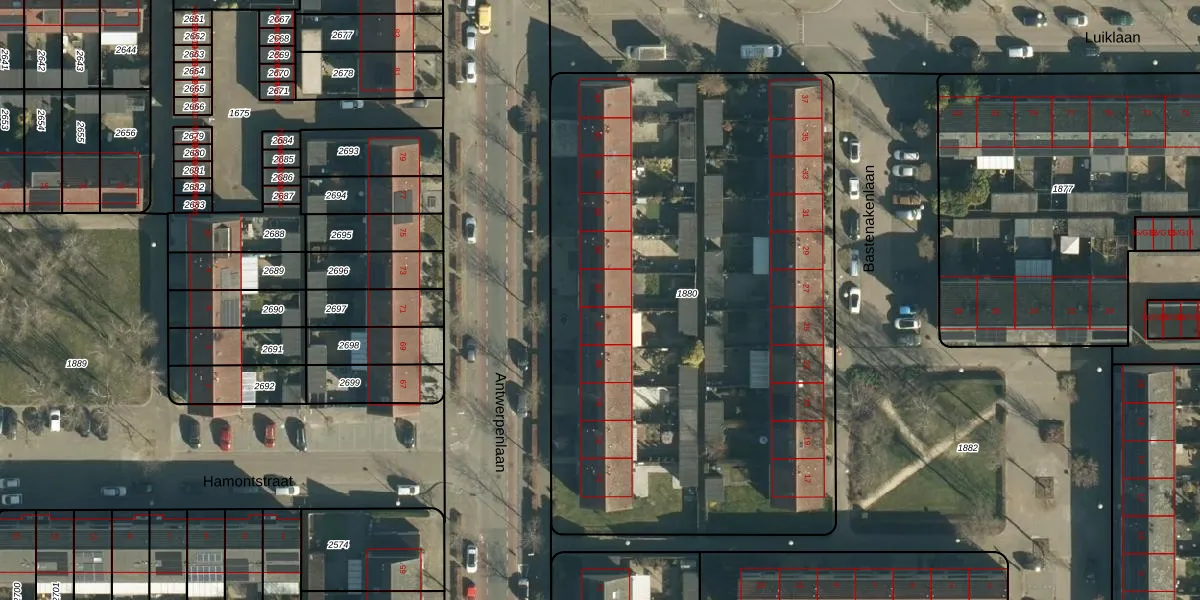 Het perceel waarop Antwerpenlaan 84 staat heeft een oppervlakte van 3608 m². Dit is een zeer groot perceel. De perceeloppervlakte wordt geregistreerd door het Kadaster. Gedetailleerde informatie over de maten van dit perceel kunt u vinden in het rapport Kadastrale kaart met maatvoering van Antwerpenlaan 84.