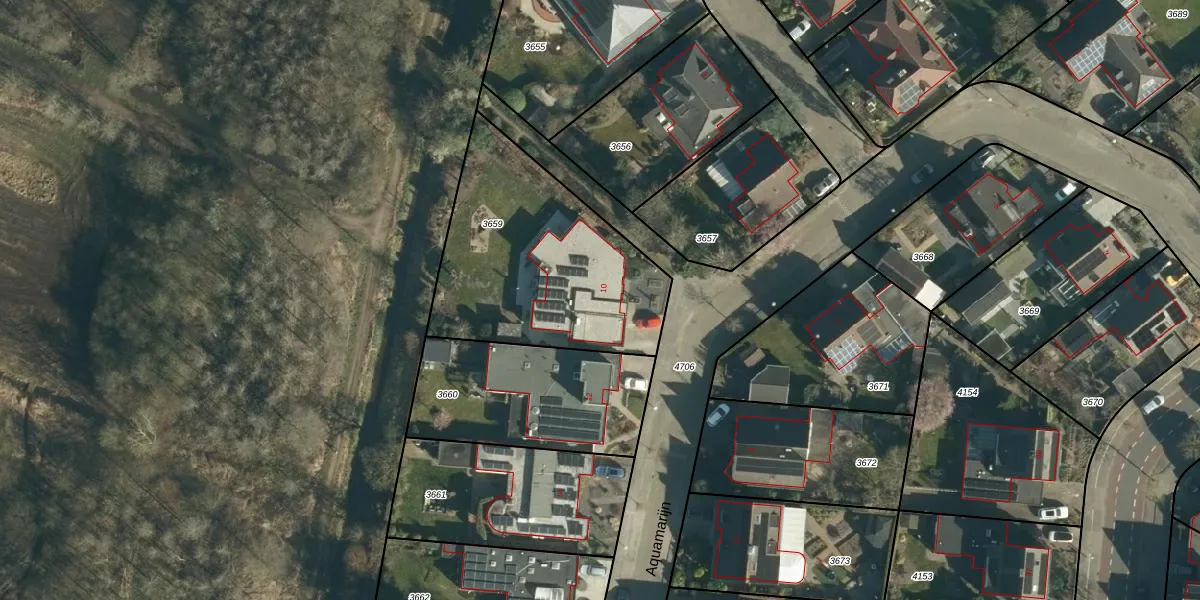 Het perceel waarop Aquamarijn 10 staat heeft een oppervlakte van 992 m². Dit is een groot perceel. De perceeloppervlakte wordt geregistreerd door het Kadaster. Gedetailleerde informatie over de maten van dit perceel kunt u vinden in het rapport Kadastrale kaart met maatvoering van Aquamarijn 10.