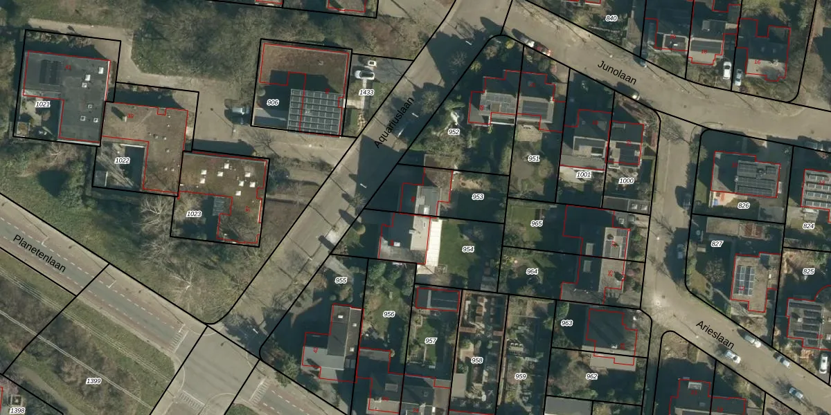 Het perceel waarop Aquariuslaan 46 staat heeft een oppervlakte van 353 m². Dit is een groot perceel. De perceeloppervlakte wordt geregistreerd door het Kadaster. Gedetailleerde informatie over de maten van dit perceel kunt u vinden in het rapport Kadastrale kaart met maatvoering van Aquariuslaan 46.