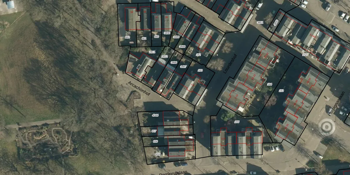 Het perceel waarop Arcachonhof 5 staat heeft een oppervlakte van 157 m². Dit is een middelgroot perceel. De perceeloppervlakte wordt geregistreerd door het Kadaster. Gedetailleerde informatie over de maten van dit perceel kunt u vinden in het rapport Kadastrale kaart met maatvoering van Arcachonhof 5.