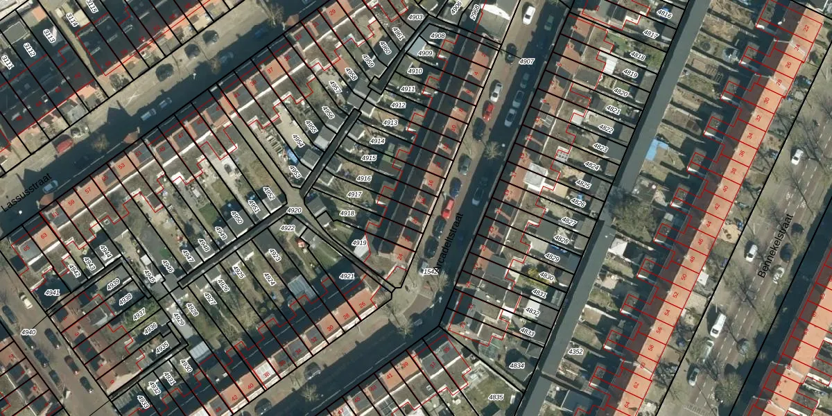 Gebruik de zoekbalk of klik op een perceel voor informatie over de adressen binnen dit perceel.