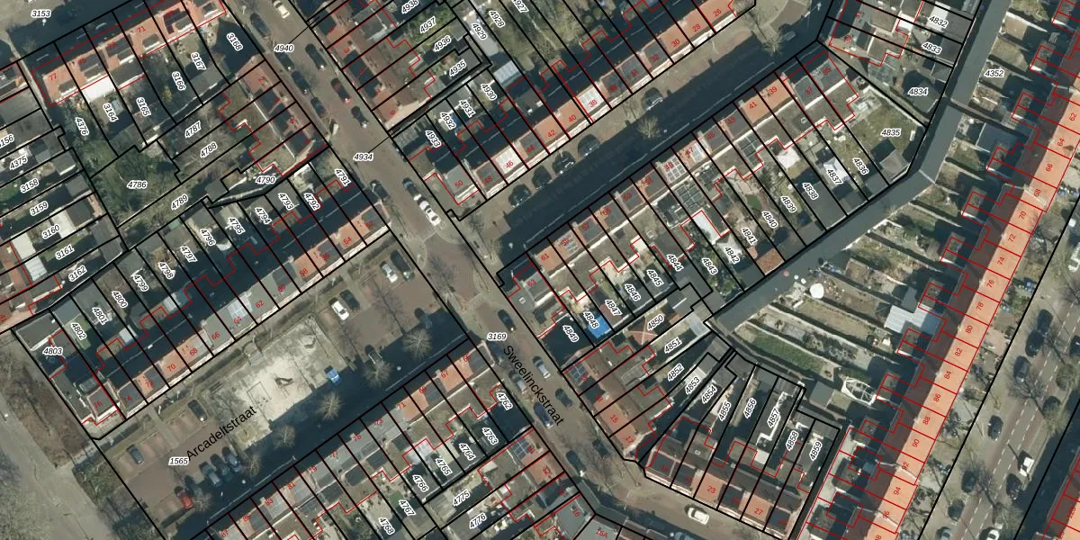 Gebruik de zoekbalk of klik op een perceel voor informatie over de adressen binnen dit perceel.