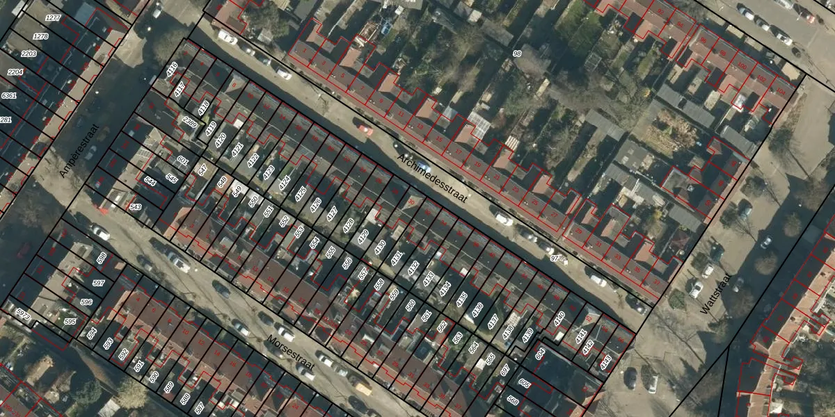 Het perceel waarop Archimedesstraat 30 staat heeft een oppervlakte van 100 m². Dit is een middelgroot perceel. De perceeloppervlakte wordt geregistreerd door het Kadaster. Gedetailleerde informatie over de maten van dit perceel kunt u vinden in het rapport Kadastrale kaart met maatvoering van Archimedesstraat 30.