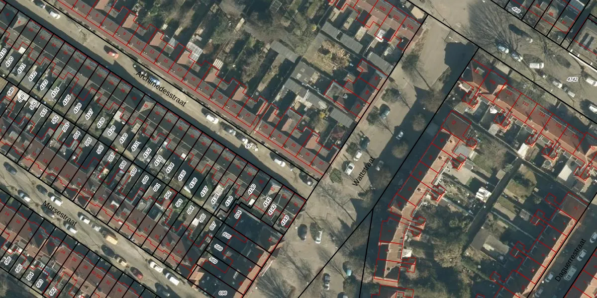 Archimedesstraat 33 is gelegen op kadastraal perceel WSL01G98. Deze kadastrale aanduiding is uniek en wordt gebruikt door het Kadaster om eigendomsrechten en andere zakelijke rechten vast te leggen. Het perceel maakt onderdeel uit van de kadastrale gemeente Woensel.