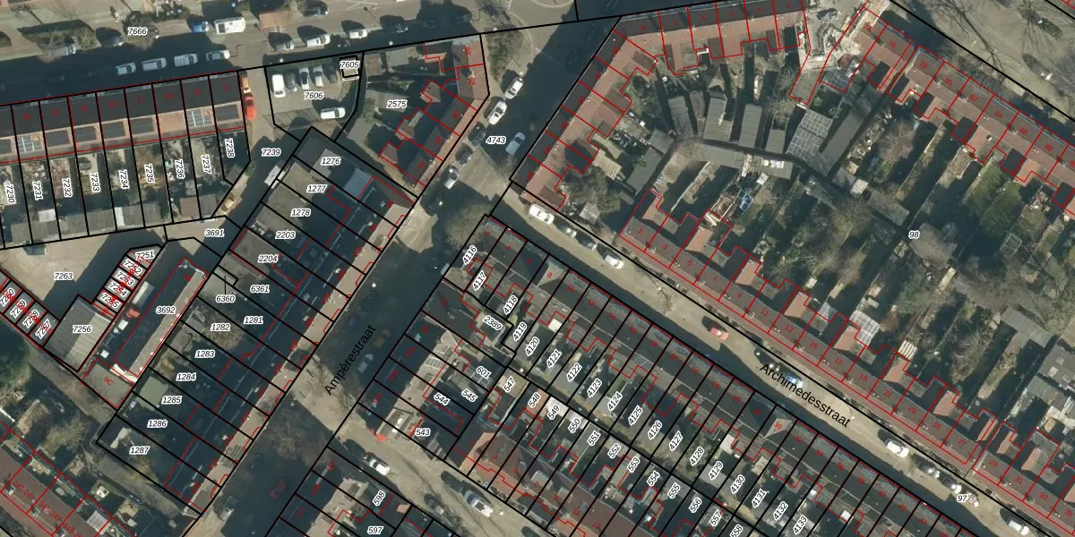 Gebruik de zoekbalk of klik op een perceel voor informatie over de adressen binnen dit perceel.