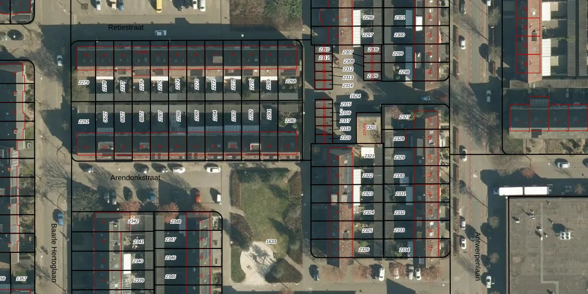 Gebruik de zoekbalk of klik op een perceel voor informatie over de adressen binnen dit perceel.