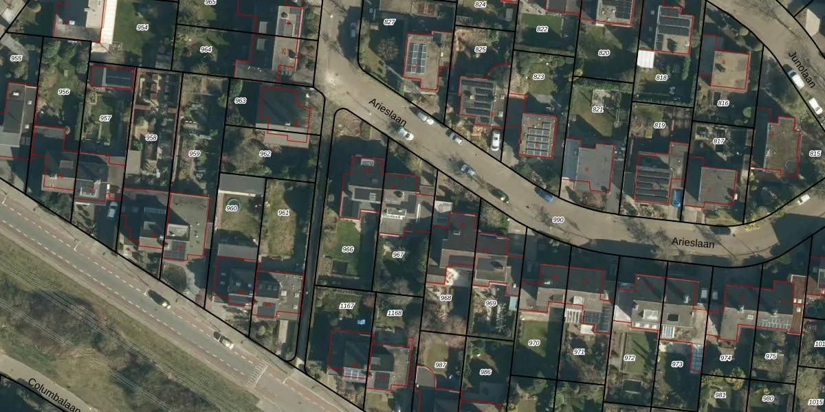 Het perceel waarop Arieslaan 19 staat heeft een oppervlakte van 432 m². Dit is een groot perceel. De perceeloppervlakte wordt geregistreerd door het Kadaster. Gedetailleerde informatie over de maten van dit perceel kunt u vinden in het rapport Kadastrale kaart met maatvoering van Arieslaan 19.