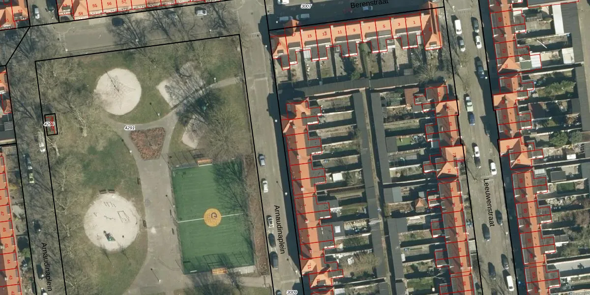 Arnaudinaplein 3 is gelegen op kadastraal perceel STM00F3008. Deze kadastrale aanduiding is uniek en wordt gebruikt door het Kadaster om eigendomsrechten en andere zakelijke rechten vast te leggen. Het perceel maakt onderdeel uit van de kadastrale gemeente Stratum.
