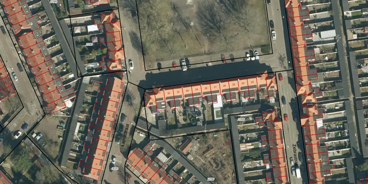 Het perceel waarop Arnaudinaplein 30 staat heeft een oppervlakte van 3379 m². Dit is een zeer groot perceel. De perceeloppervlakte wordt geregistreerd door het Kadaster. Gedetailleerde informatie over de maten van dit perceel kunt u vinden in het rapport Kadastrale kaart met maatvoering van Arnaudinaplein 30.