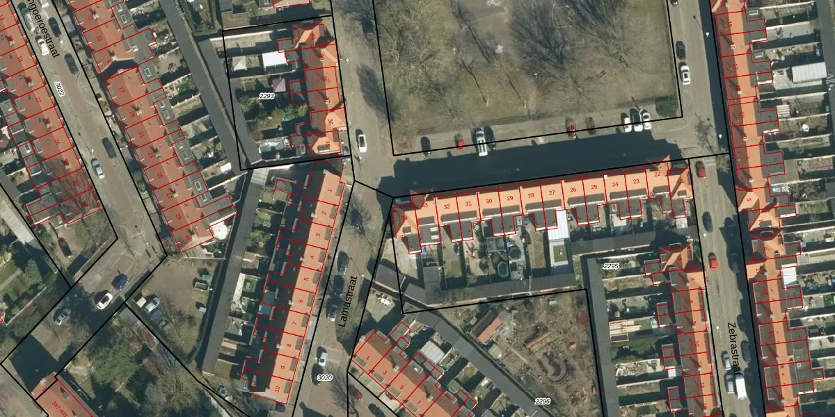 Het perceel waarop Arnaudinaplein 33 staat heeft een oppervlakte van 3379 m². Dit is een zeer groot perceel. De perceeloppervlakte wordt geregistreerd door het Kadaster. Gedetailleerde informatie over de maten van dit perceel kunt u vinden in het rapport Kadastrale kaart met maatvoering van Arnaudinaplein 33.