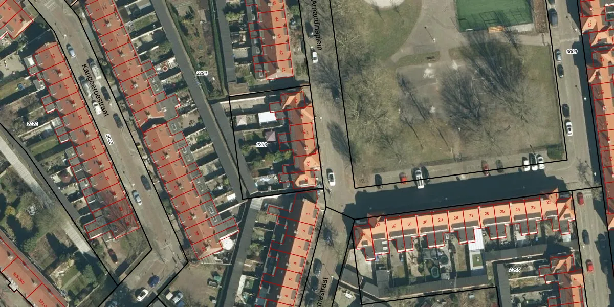 Het perceel waarop Arnaudinaplein 37 staat heeft een oppervlakte van 902 m². Dit is een groot perceel. De perceeloppervlakte wordt geregistreerd door het Kadaster. Gedetailleerde informatie over de maten van dit perceel kunt u vinden in het rapport Kadastrale kaart met maatvoering van Arnaudinaplein 37.