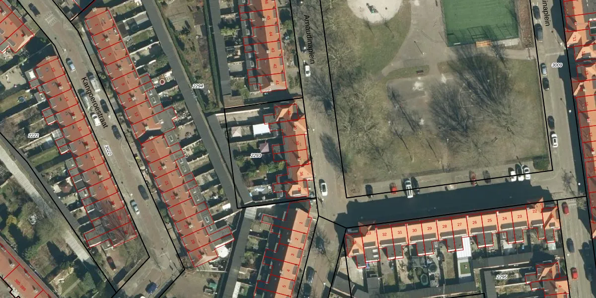 Het perceel waarop Arnaudinaplein 38 staat heeft een oppervlakte van 902 m². Dit is een groot perceel. De perceeloppervlakte wordt geregistreerd door het Kadaster. Gedetailleerde informatie over de maten van dit perceel kunt u vinden in het rapport Kadastrale kaart met maatvoering van Arnaudinaplein 38.