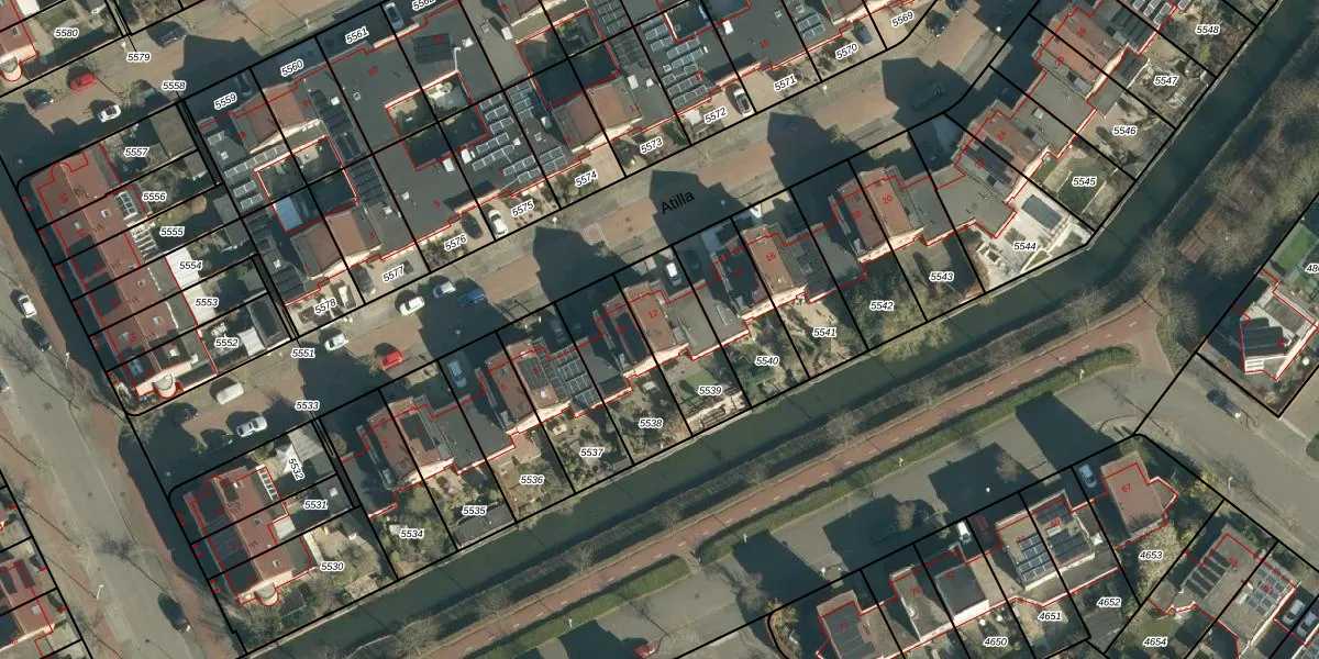 Het perceel waarop Atilla 12 staat heeft een oppervlakte van 272 m². Dit is een middelgroot perceel. De perceeloppervlakte wordt geregistreerd door het Kadaster. Gedetailleerde informatie over de maten van dit perceel kunt u vinden in het rapport Kadastrale kaart met maatvoering van Atilla 12.