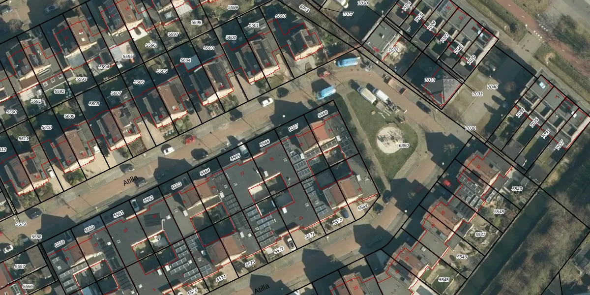 Het perceel waarop Atilla 23 staat heeft een oppervlakte van 220 m². Dit is een middelgroot perceel. De perceeloppervlakte wordt geregistreerd door het Kadaster. Gedetailleerde informatie over de maten van dit perceel kunt u vinden in het rapport Kadastrale kaart met maatvoering van Atilla 23.