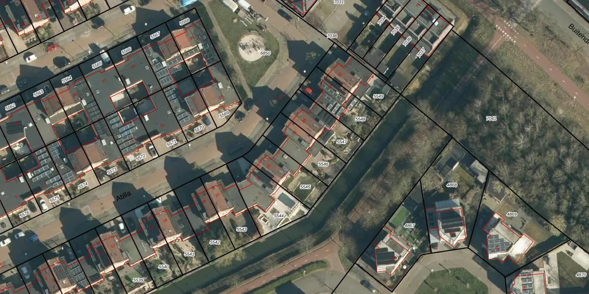 Het perceel waarop Atilla 26 staat heeft een oppervlakte van 282 m². Dit is een middelgroot perceel. De perceeloppervlakte wordt geregistreerd door het Kadaster. Gedetailleerde informatie over de maten van dit perceel kunt u vinden in het rapport Kadastrale kaart met maatvoering van Atilla 26.