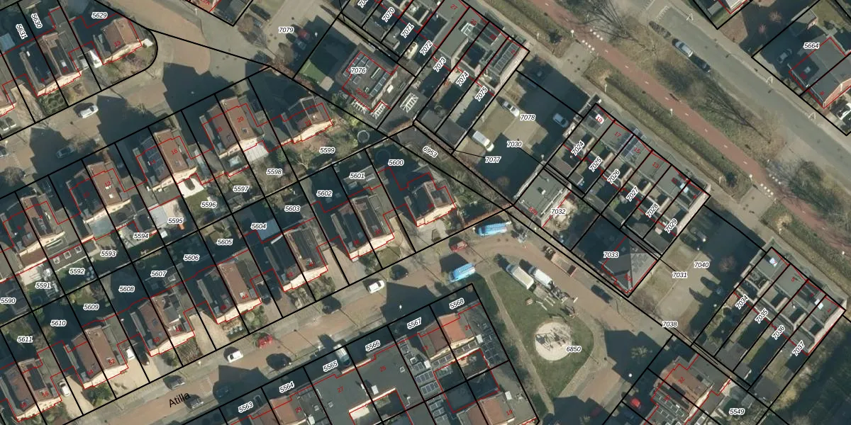 Het perceel waarop Atilla 34 staat heeft een oppervlakte van 399 m². Dit is een groot perceel. De perceeloppervlakte wordt geregistreerd door het Kadaster. Gedetailleerde informatie over de maten van dit perceel kunt u vinden in het rapport Kadastrale kaart met maatvoering van Atilla 34.