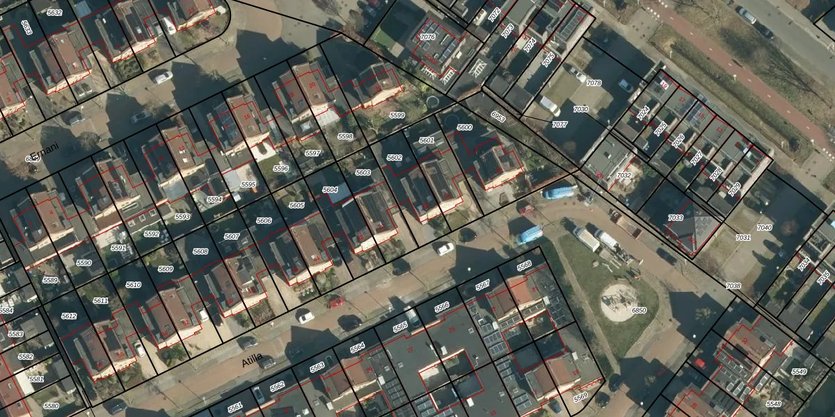 Het perceel waarop Atilla 38 staat heeft een oppervlakte van 237 m². Dit is een middelgroot perceel. De perceeloppervlakte wordt geregistreerd door het Kadaster. Gedetailleerde informatie over de maten van dit perceel kunt u vinden in het rapport Kadastrale kaart met maatvoering van Atilla 38.