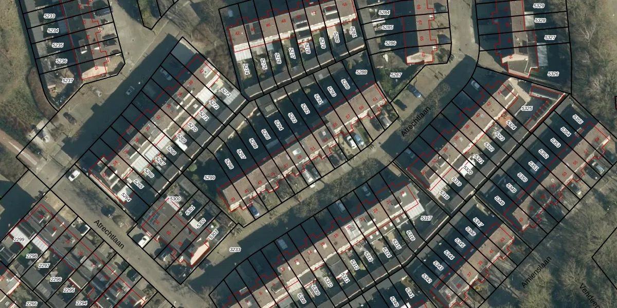 Het perceel waarop Atrechtlaan 51 staat heeft een oppervlakte van 163 m². Dit is een middelgroot perceel. De perceeloppervlakte wordt geregistreerd door het Kadaster. Gedetailleerde informatie over de maten van dit perceel kunt u vinden in het rapport Kadastrale kaart met maatvoering van Atrechtlaan 51.