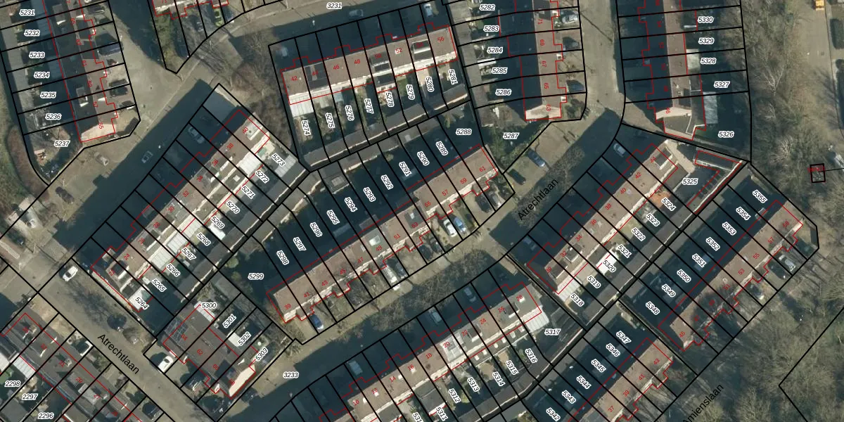 Het perceel waarop Atrechtlaan 55 staat heeft een oppervlakte van 155 m². Dit is een middelgroot perceel. De perceeloppervlakte wordt geregistreerd door het Kadaster. Gedetailleerde informatie over de maten van dit perceel kunt u vinden in het rapport Kadastrale kaart met maatvoering van Atrechtlaan 55.