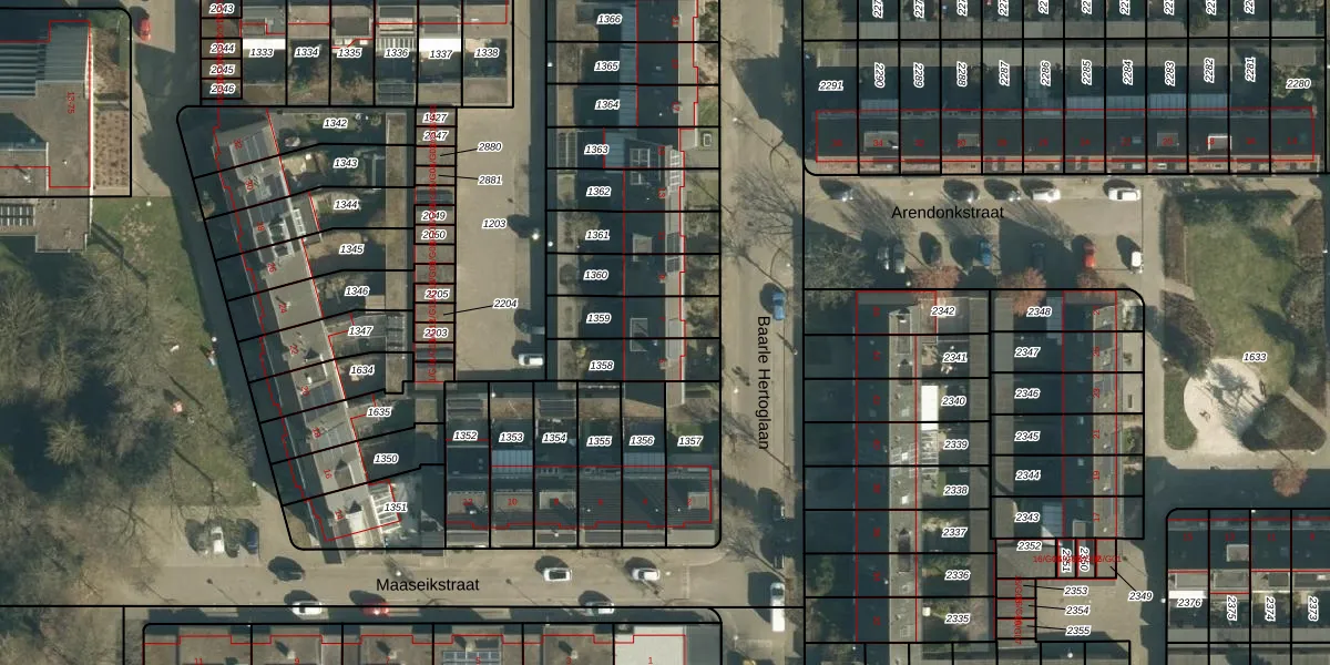 Baarle Hertoglaan 7 is gelegen op kadastraal perceel WSL01M1359. Deze kadastrale aanduiding is uniek en wordt gebruikt door het Kadaster om eigendomsrechten en andere zakelijke rechten vast te leggen. Het perceel maakt onderdeel uit van de kadastrale gemeente Woensel.