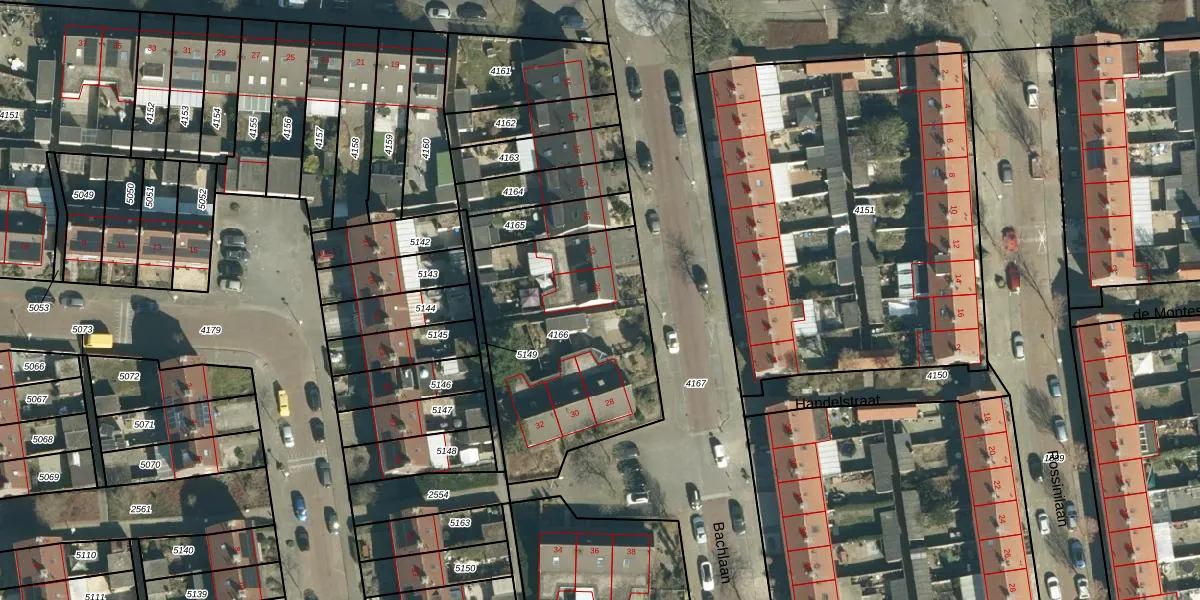 Het perceel waarop Bachlaan 26 staat heeft een oppervlakte van 985 m². Dit is een groot perceel. De perceeloppervlakte wordt geregistreerd door het Kadaster. Gedetailleerde informatie over de maten van dit perceel kunt u vinden in het rapport Kadastrale kaart met maatvoering van Bachlaan 26.